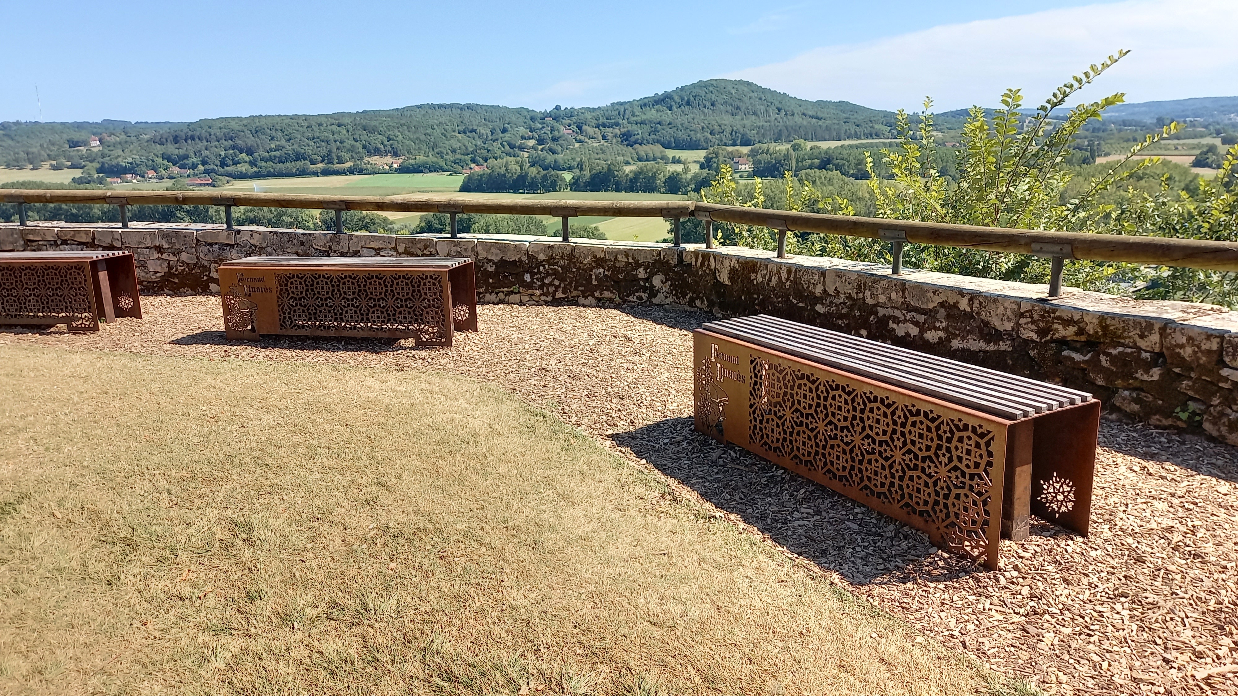 Beaux jardins avec vue panoramique sur la Dordogne et la Vézère. Très beaux aménagements avec différentes espèces de plantes aromatiques, médicinales et autres essences d'arbres. Parcours ludique pour les enfants.