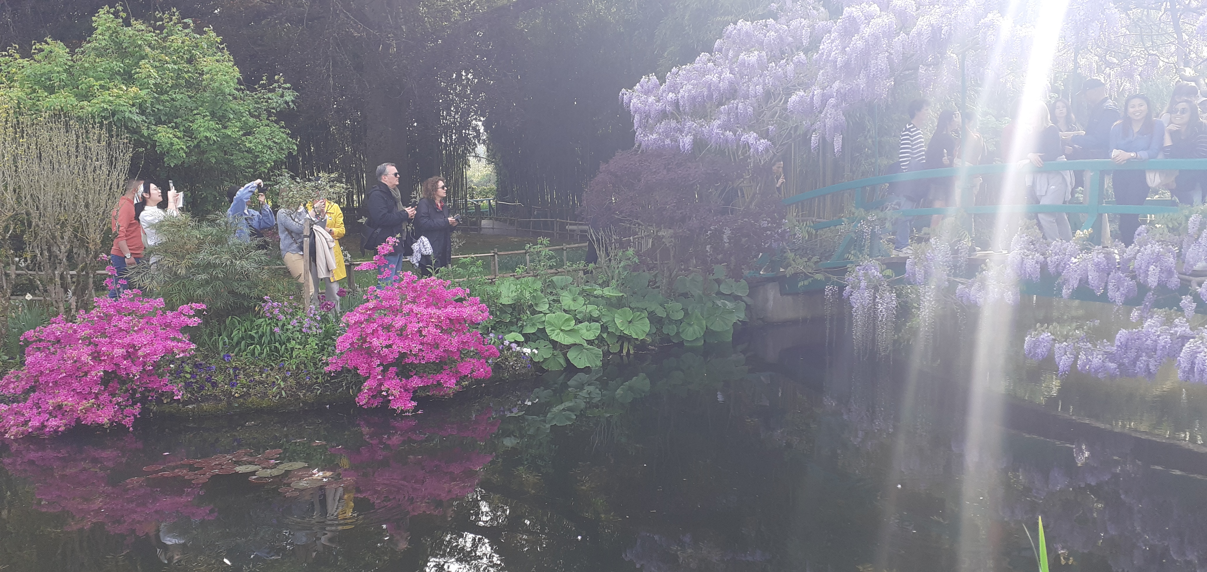 Posté le 07/05/2023 à 13:02" Un coin de paix enchanteur et évocateur à une heure de Paris, un petit lac artificiel peuplé de nénuphars, entouré de fleurs, et traversé par le célèbre pont japonais orné de glycines fleuries. un lieu magique à visiter, la visite est incluse dans la visite de la maison monet et du jardin. Prix 13 euros. "