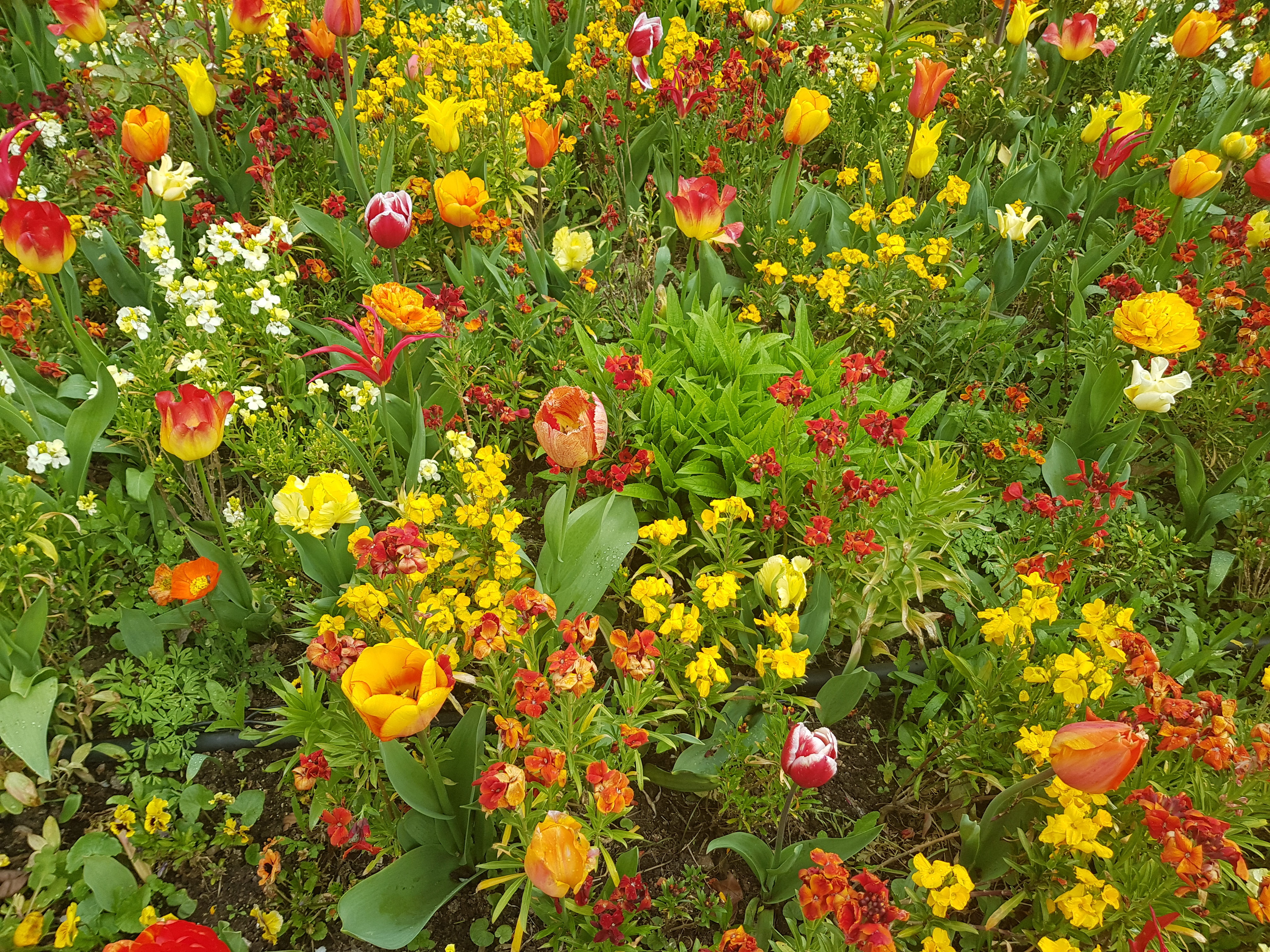 Trop de monde on piétine dommage la floraison des tulipes des giroflées, des pensées c'était très beau, il faudrait limiter les entrées, évitons le dimanche par beau temps