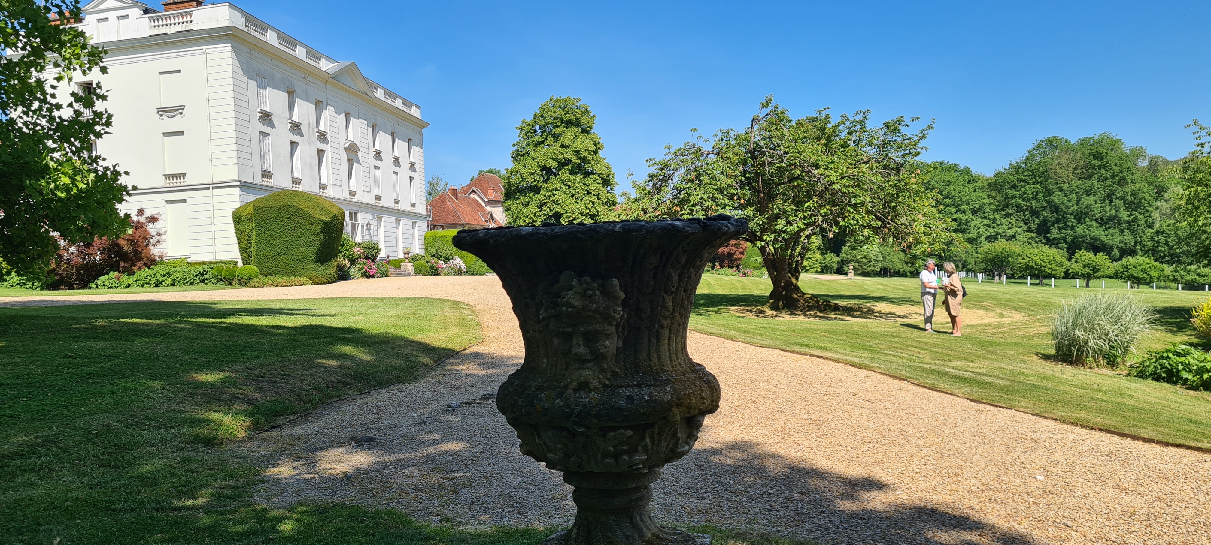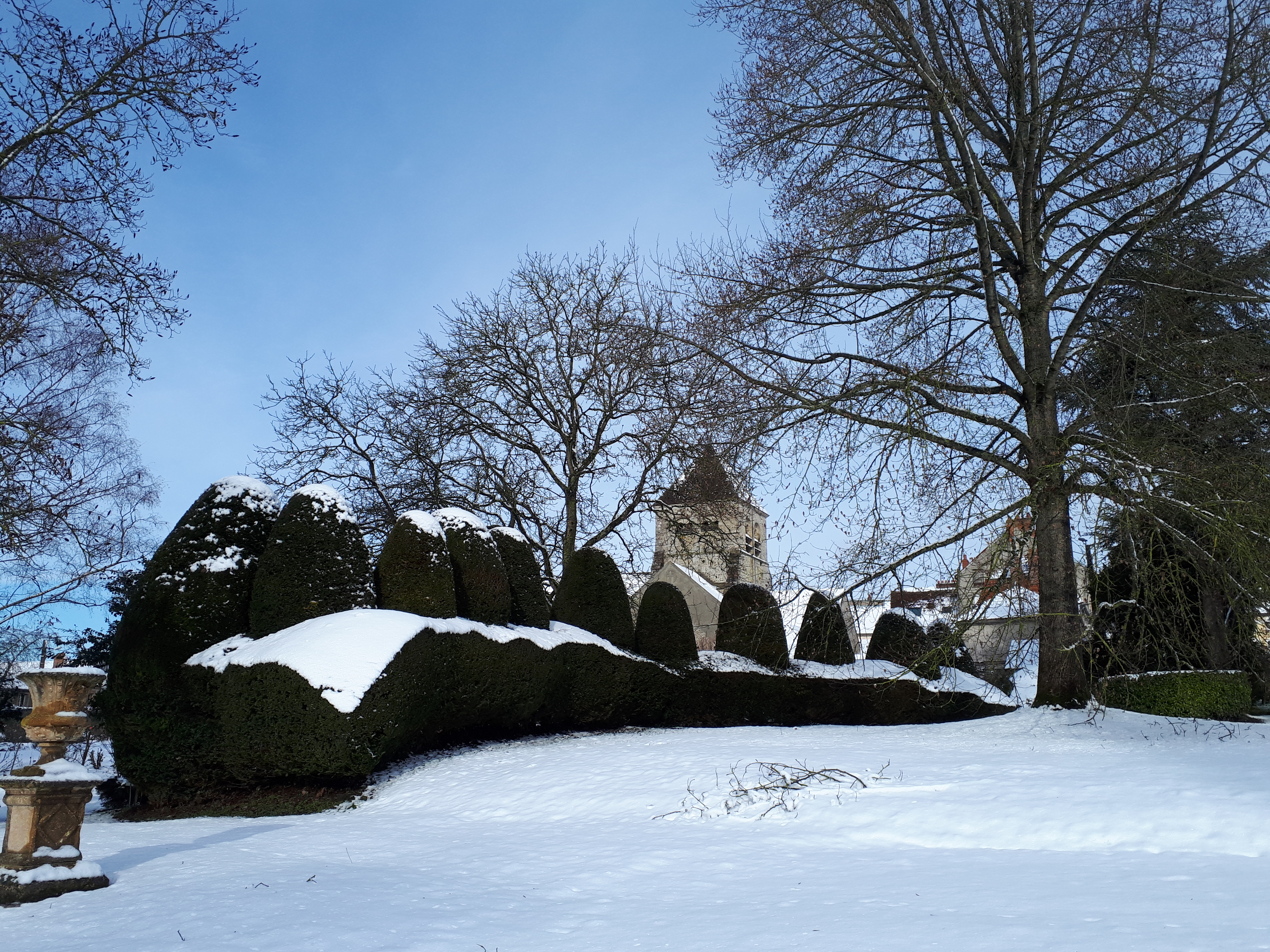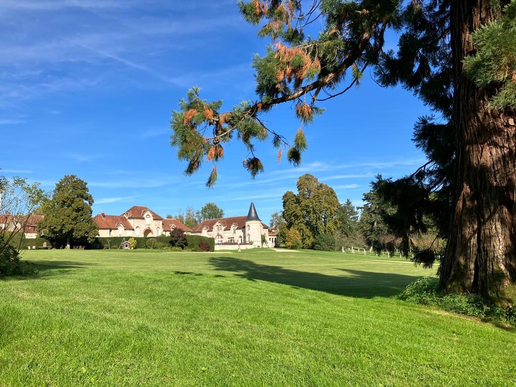 Dans ce jardin privé nous avons été acceuilli par le propriétaire en costume et chapeau de flanelle. Déjà ça donne le ton. Nous étions seuls à le visiter (librement, avec un plan donné au paiement des tickets). Notre chienne a finalement été tolerée si attachée. Le jardin possède plusieurs zones toutes différente et c'est à mon avis son plus grand intêrét. Le chateau avoisinant de style premier empire ou colonial, ainsi que l'église du XIII ème sciècle offrent un beau panorama, ainsi que le lac avec sa petite île en partie basse du parc. Il régne une impression de douceur et de calme, en même temps qu'un exotisme du nouveau monde avec le type colonial et des séquoïas géants d'Amérique sans doute plantés il y a deux siècles. Jardins français, anglais, fôrets, vergers, potagers, rocailles, rivière, des ponts et passerelles et un hommage à La Fontaine évidemment puisque nous sommes dans sa région.