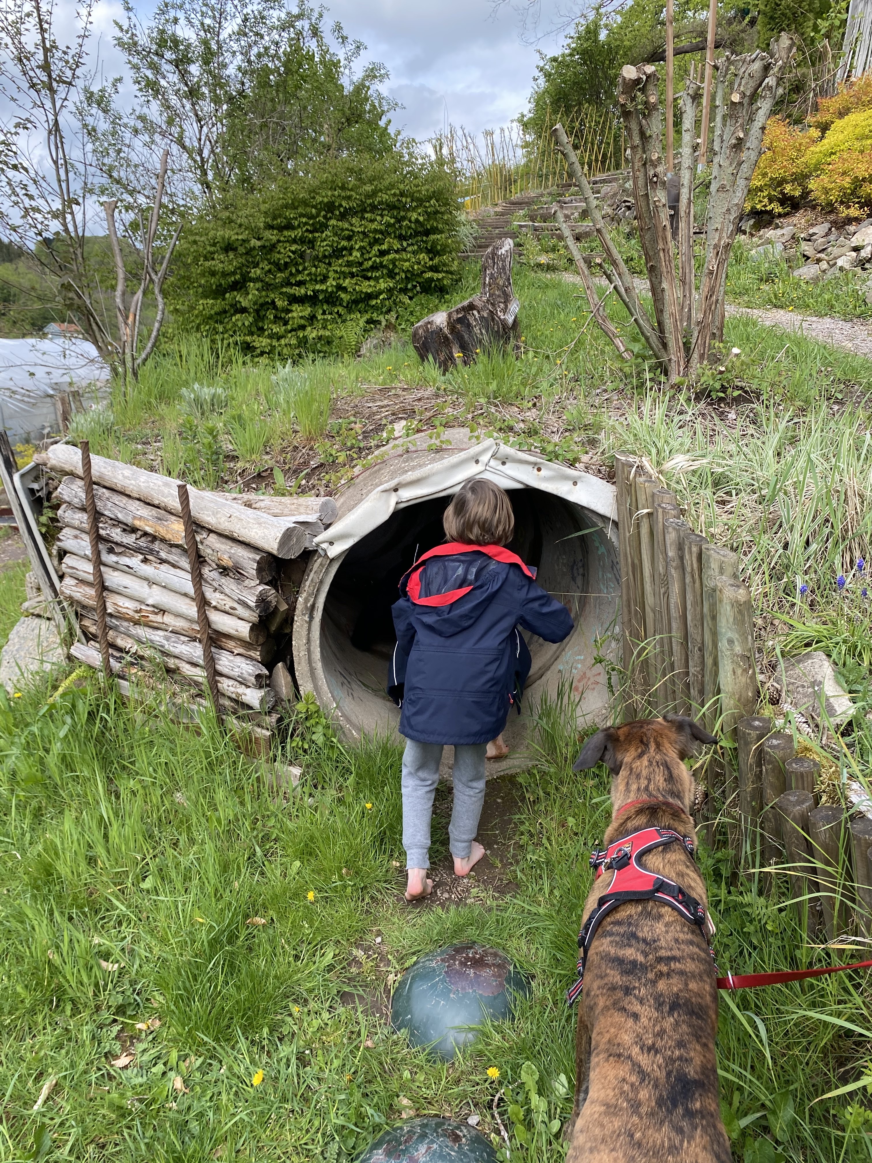 Une association s occupe de ces jardins ludiques. Un moment de détente parmi les plantes, les légumes et les insectes. Un parcours pied nus pour sentir le sol. Bravo messieurs.