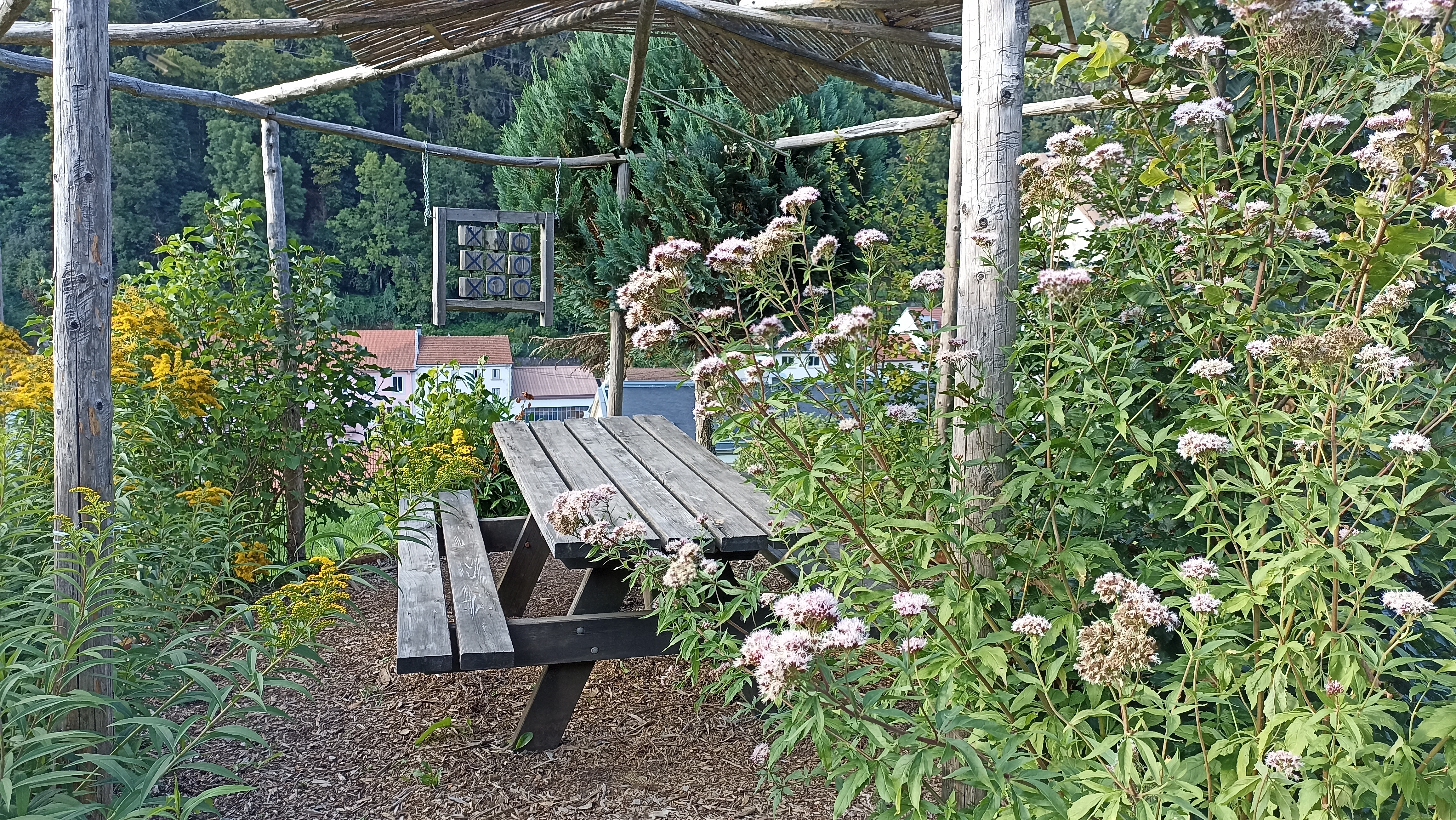 Pour partager un moment convivial autour d'un verre (bierre artisanale des environs et sirop fait maison par l'association 😋) en apprendre d'avantage sur les plantes ou juste faire une agréable balade avec les enfants (il y'a aussi quelques animaux) voir une petite sieste dans un hamac à l'ombre c'est le top !!! De plus les jardins en terrasse étant en hauteur ils offrent une très belle vue de la ville de Plombières. Je mentionne rapidement l'accrobranche, je n'ai pas encore eue l'occasion de tester, mais c'est une chouette activité à faire avec, ou sans 😉, enfants. Et les employés sont très sympa et à l'écoute, ils se feront une joie de répondre à toutes vos questions.