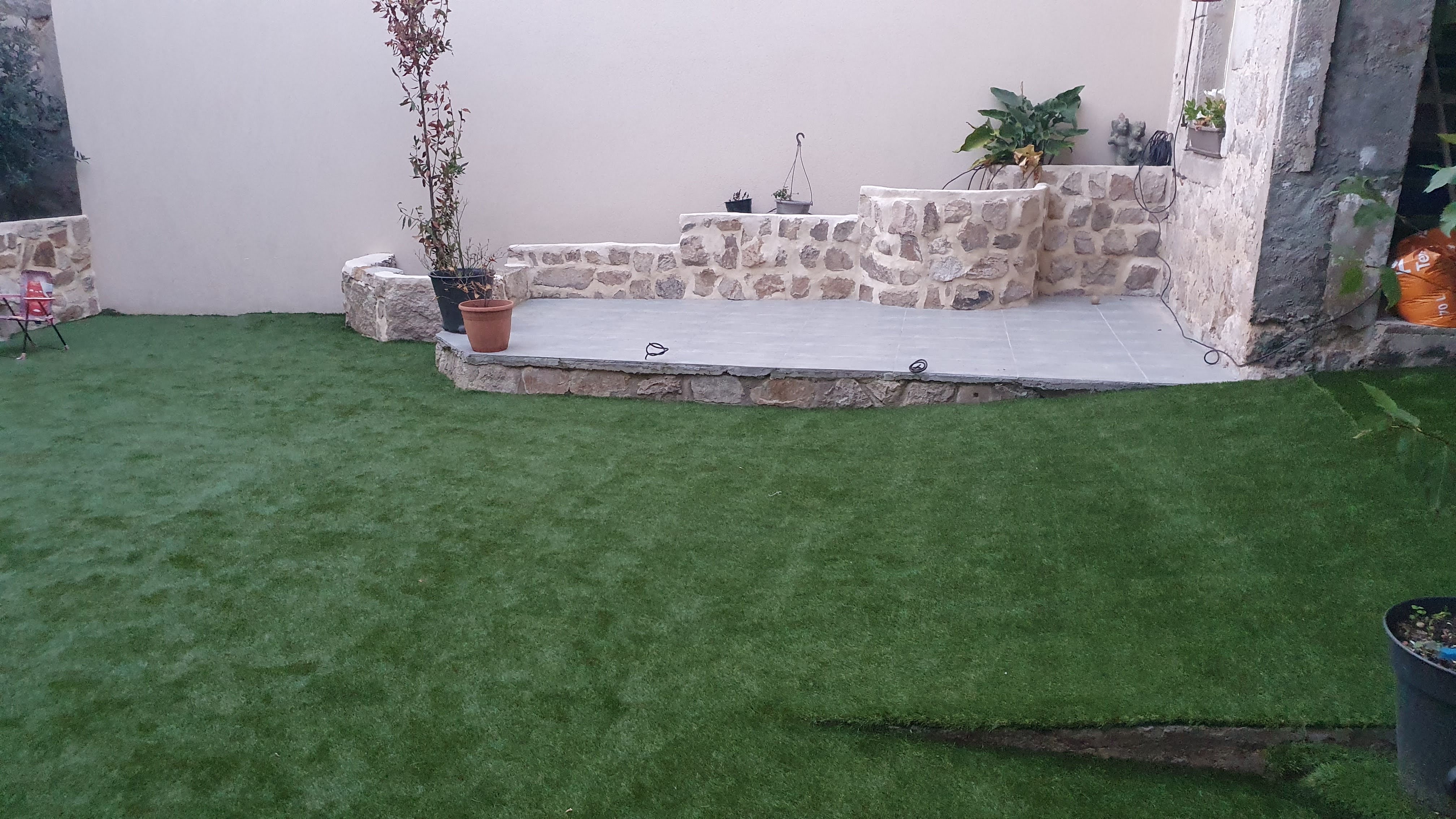 Posté le 16/07/2021 à 08:58"Réalisation d'une terrasse en gazon synthétique Soleil/Marseille de 50m2, je suis super content du résultat, plus vrai que nature, les enfants se régalent, le contact du gazon est très agréable. J'ai réalisé la préparation du terrain et la pose à l'aide des tutos de votre site (nickel) le conditionnement et la livraison RAS. Merci pour cet excellent produit."